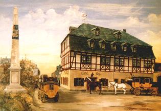 | Die meisten Gäste hatte das Roß", wenn Kaufleute zur Leipziger Messe fuhren oder Wohlbetuchte nach Karlsbad wollten. Auch Johann Wolfgang von Goethe weilte im Roß. Erst im 19. Jahrhundert, als noch andere Gaststätten eröffnet wurden, verlor das Roß" die dominierende Stellung als alleiniger Schankbetrieb. | ||||||||||||||||||||||||||||||||||||||||||||||||||||||||||||||